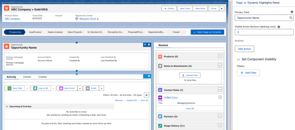 Dynamic highlights panel – highlights panel helps users see key components of the record without scrolling down. Adding filters to this enhances the UI even more.